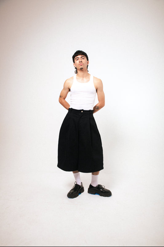 PLEATED OVERSIZED JORTS
