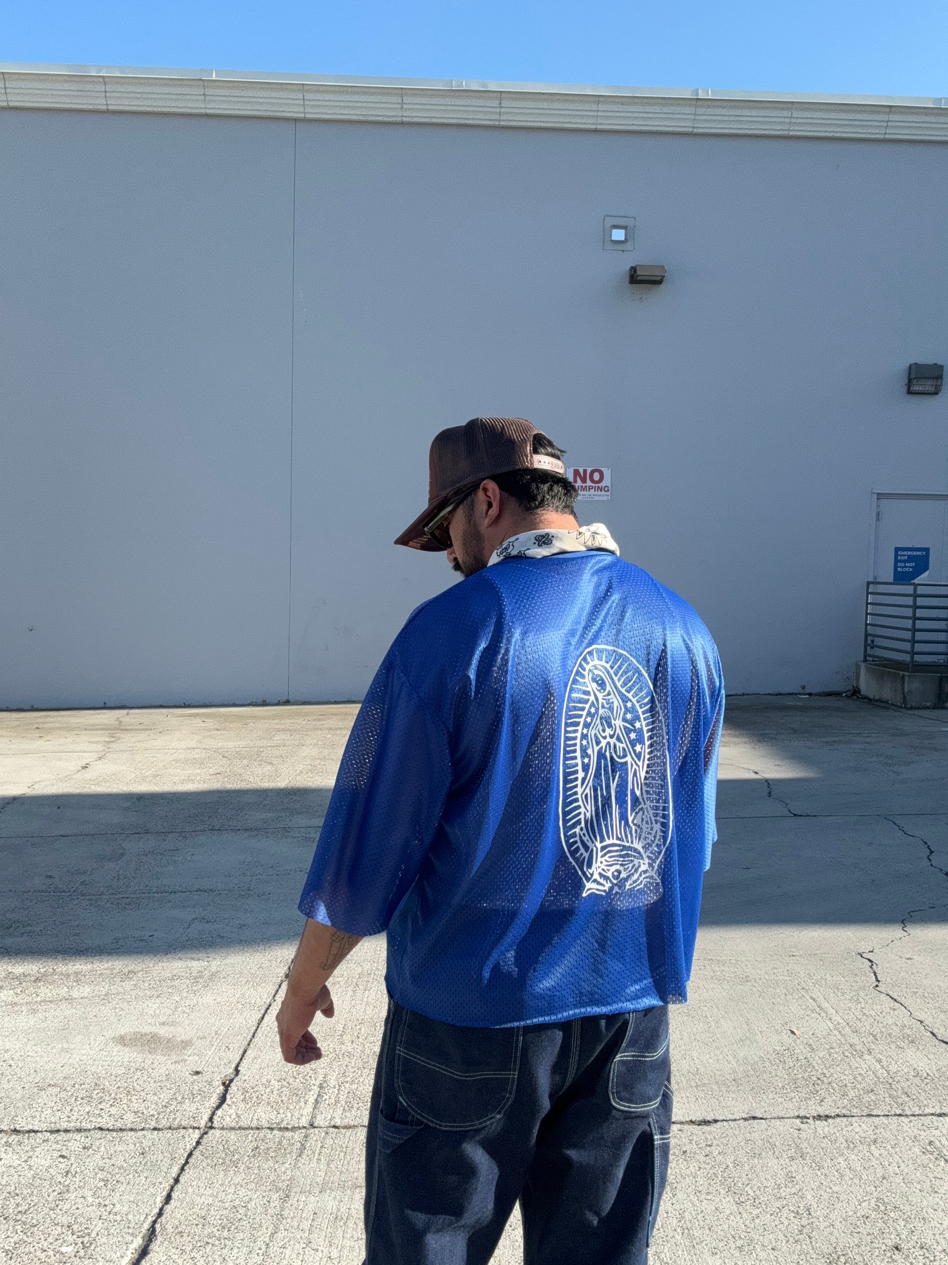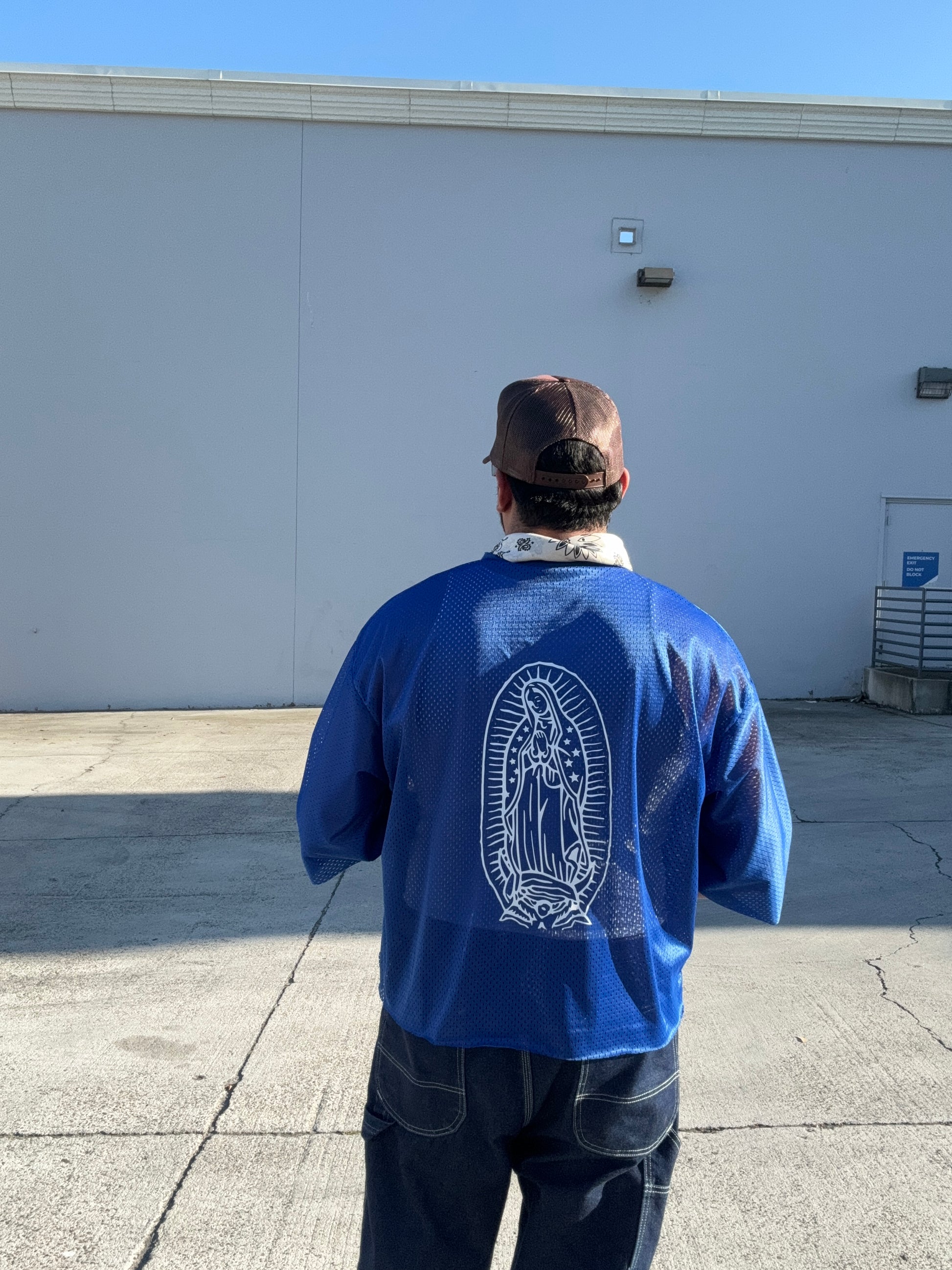 Cropped cobalt blue jersey.