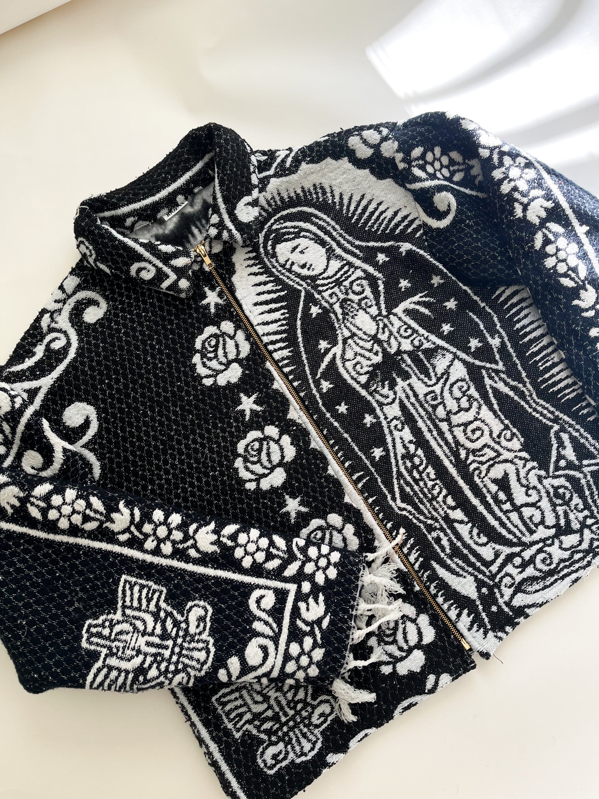 UPCYCLED GABÁN INTO A ZIP UP JACKET.